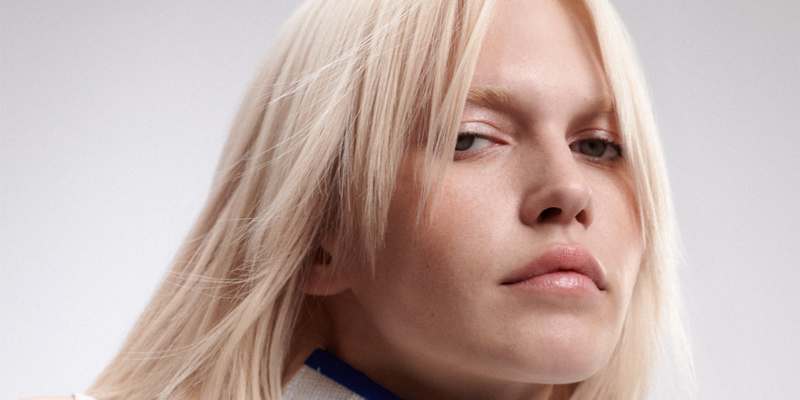 Präzises Färben mit einem monochrom sandfarbenen Toner akzentuiert die Linien und Konturen des Cuts und verleiht dem blondierten Haar Glanz.